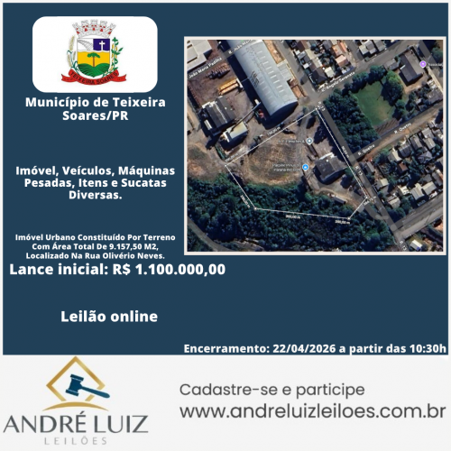 O Município de Teixeira Soares informa que está aberto o Leilão Online para alienação de bens públicos.